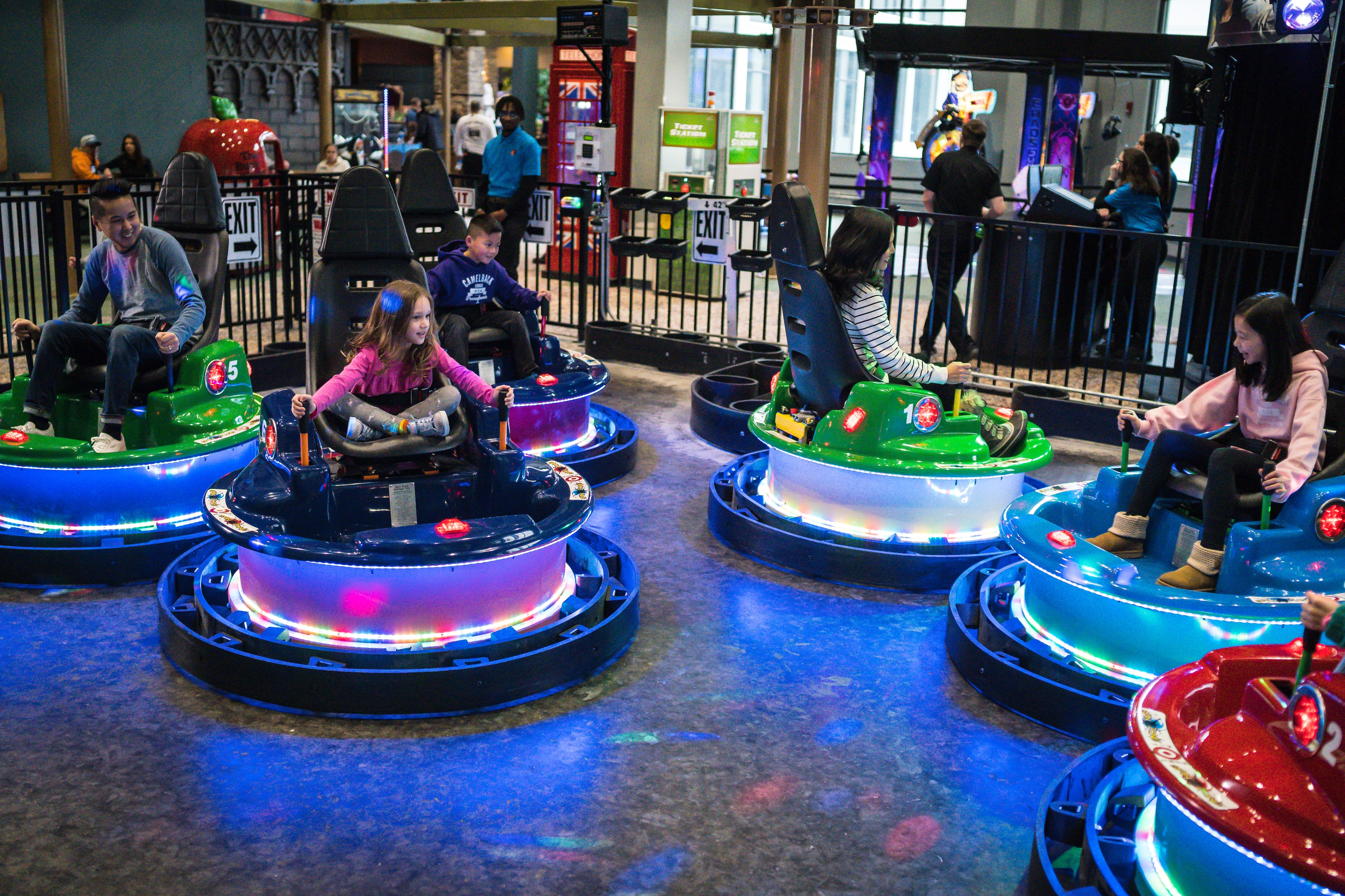 Choose a color and get ready to rattle and spin on our indoor bumper car course! Epically collide as you outmaneuver your fellow drivers on the track! Dodge. Bounce. Smile. Shout! Krazy Karts is a crash course in family fun.